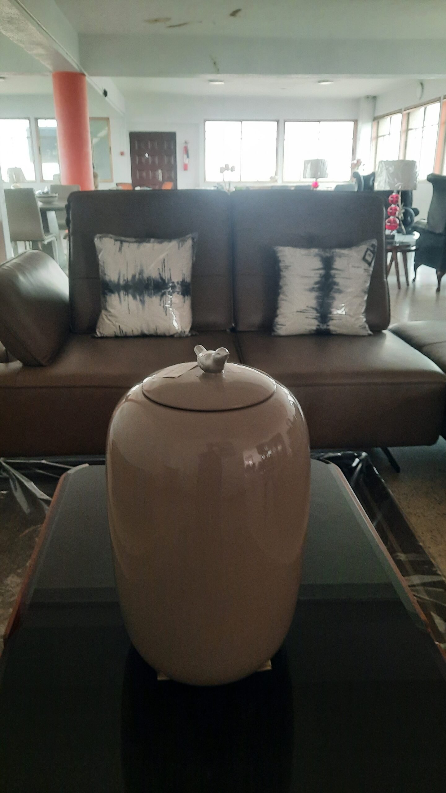 45.5Cm Ceramic Jar W. Bird Lid Shiny Taupe Silver Bird Vase