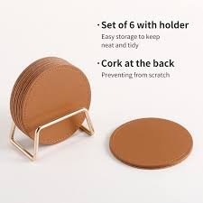 Coffee Mat Glass Coaster Metal And Leather