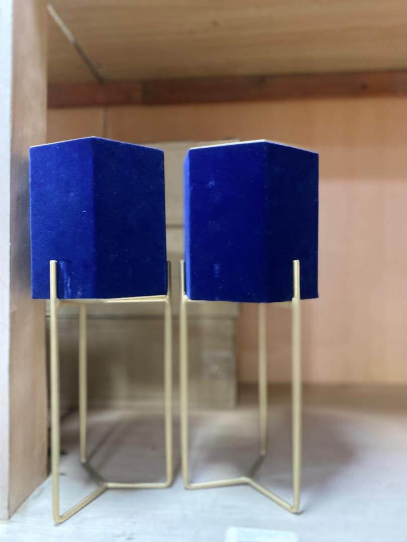 Dark Glam Navy Plant Pot On Metal Stand 33.5Cm Flower