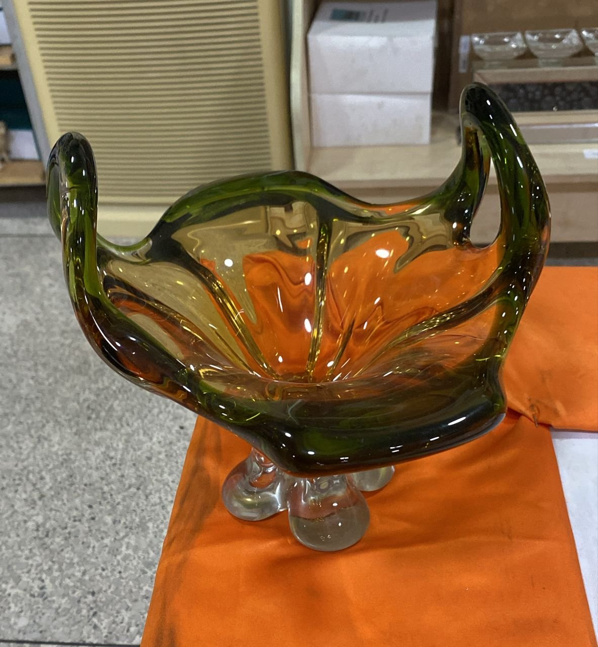 Glass Planter In Green/Orange And White Colour