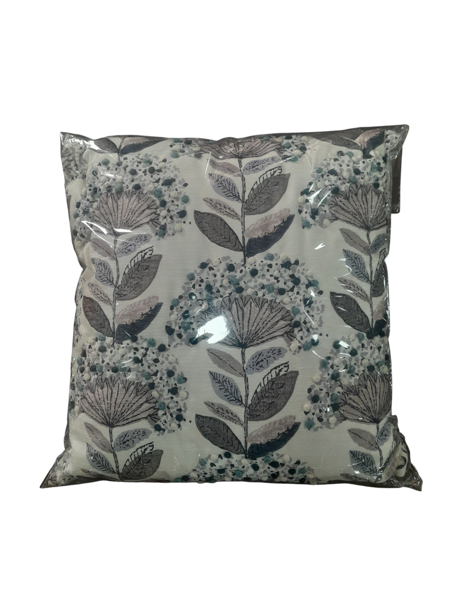 White Base With Blue Floral Emb 45 Throw Pillow
